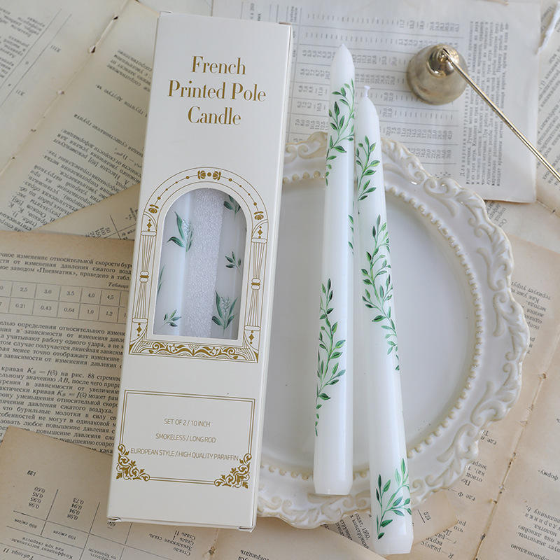 25Cm Luxurious Aromatherapy Wedding Print Long Pole Candle Biodegradable Natural European Romantic Dinner Candle for Bars