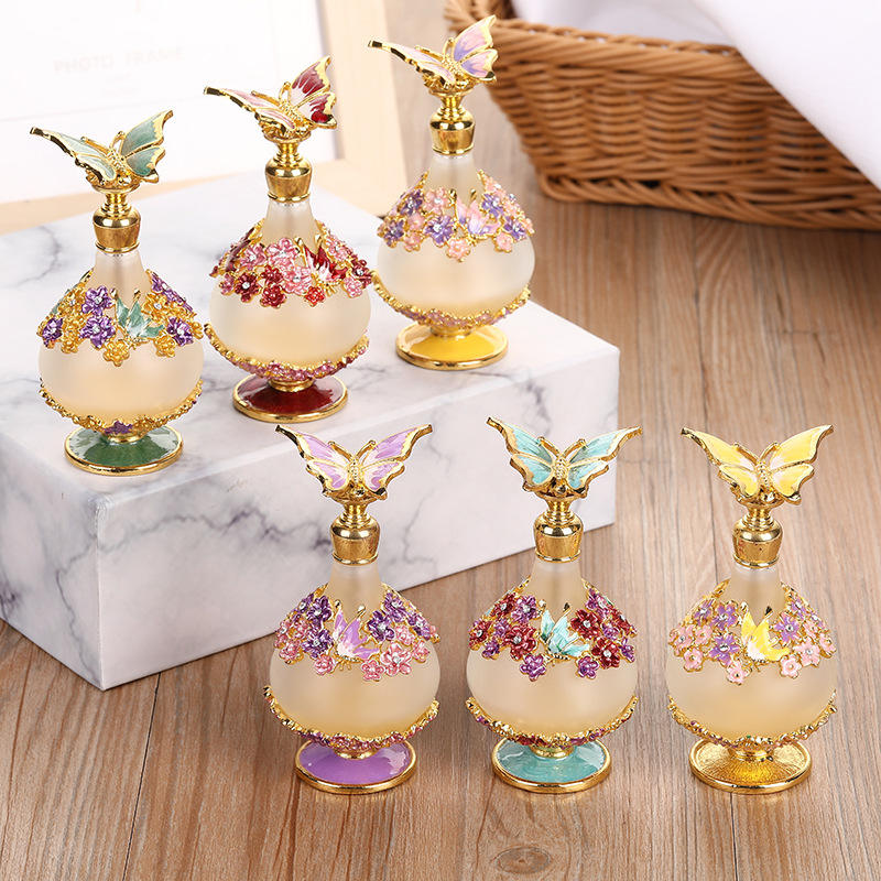 25ML enamel color butterfly small flower gourd perfume sub bottle vintage elegant pattern essential oil empty glass