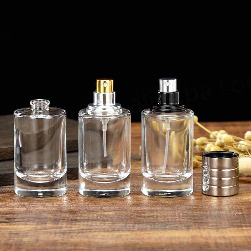 25ml 50ml 100ml Empty Transparent Glass Fragrance Bottles Black Cap Silver Spray Bottles