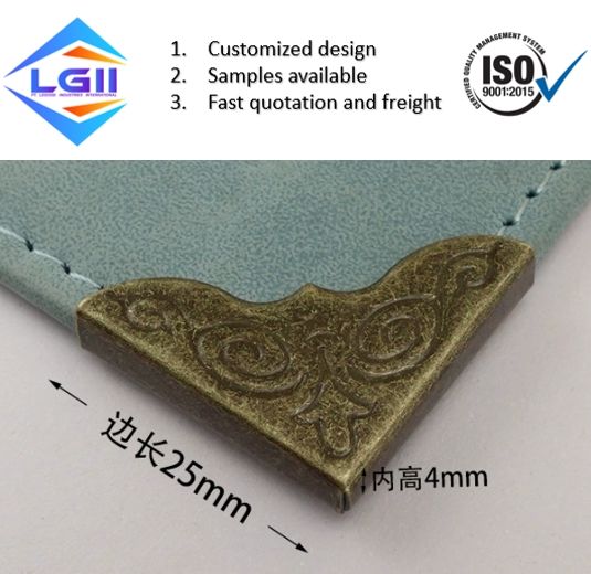 25mm Bronze Metal Notebook Bag Corner Book Cover Iron-made Decorative Album Book Corner Protector in Box Packaging
