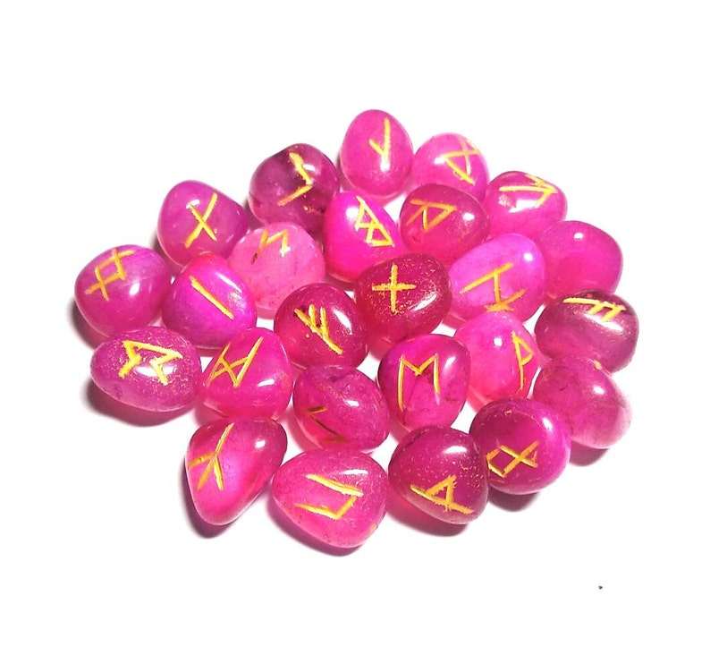25pcs Pink Onyx Crystal Elder Futhark Rune Set Handmade Gemstone Alfazal Agate Reiki Healing Chakra Carved Carved Painting