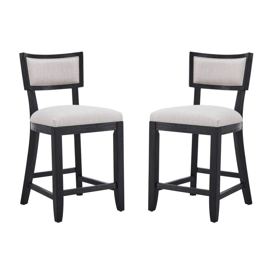 26.5\" Counter Stools Set 2 Upholstered Beige Black Bar Stools Comfortable Backrest Solid Rubber Wood Frame Armless Footrest Bar