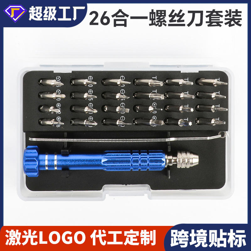 26 In 1 Screwdriver Set With Magnetic Bits For Mobile Phone Computer Watch Repair Tool Case 122mm Length Plastic Handle