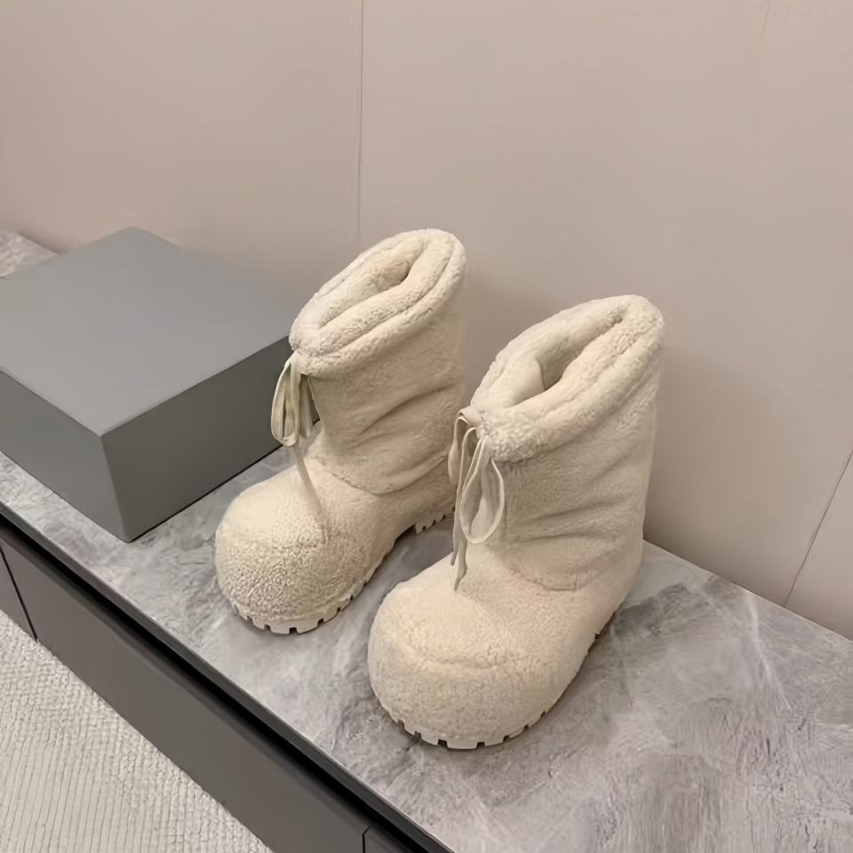 2626 New High-Top Chunky Round-Toe Snow Boots Lace-Up Suede Upper Rubber Sole Lightweight Breathable White/Black Fashion Winter
