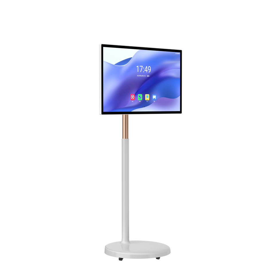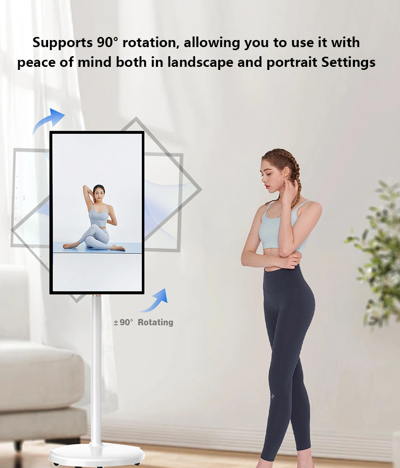 27 32-Inch Portable Touchscreen Monitor Android 13MP Camera Rolling TV Stand on Wheels HDTV for Fitness Yoga Games Video Player