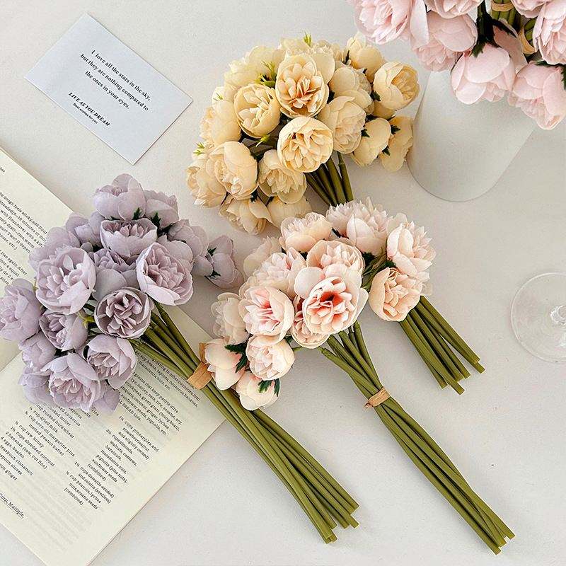 27 Head Tea Rose Bouquet Peony Flower Handle bunch Flower Wedding Hall Hand Bouquet Home Decoration Photography Props