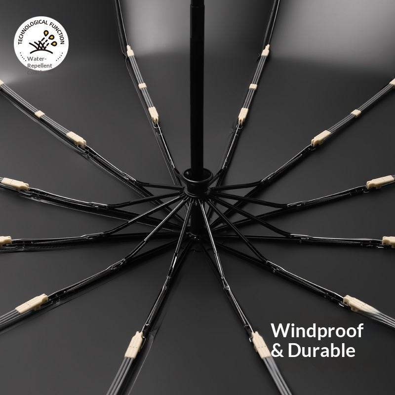 27 Inch Ring Buckle Three-Fold Double Folding Automatic Business Umbrella with Increased Wind-Resistant Design