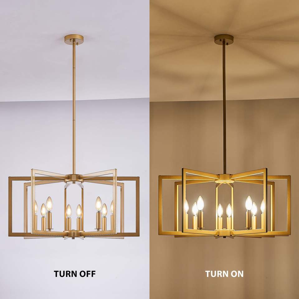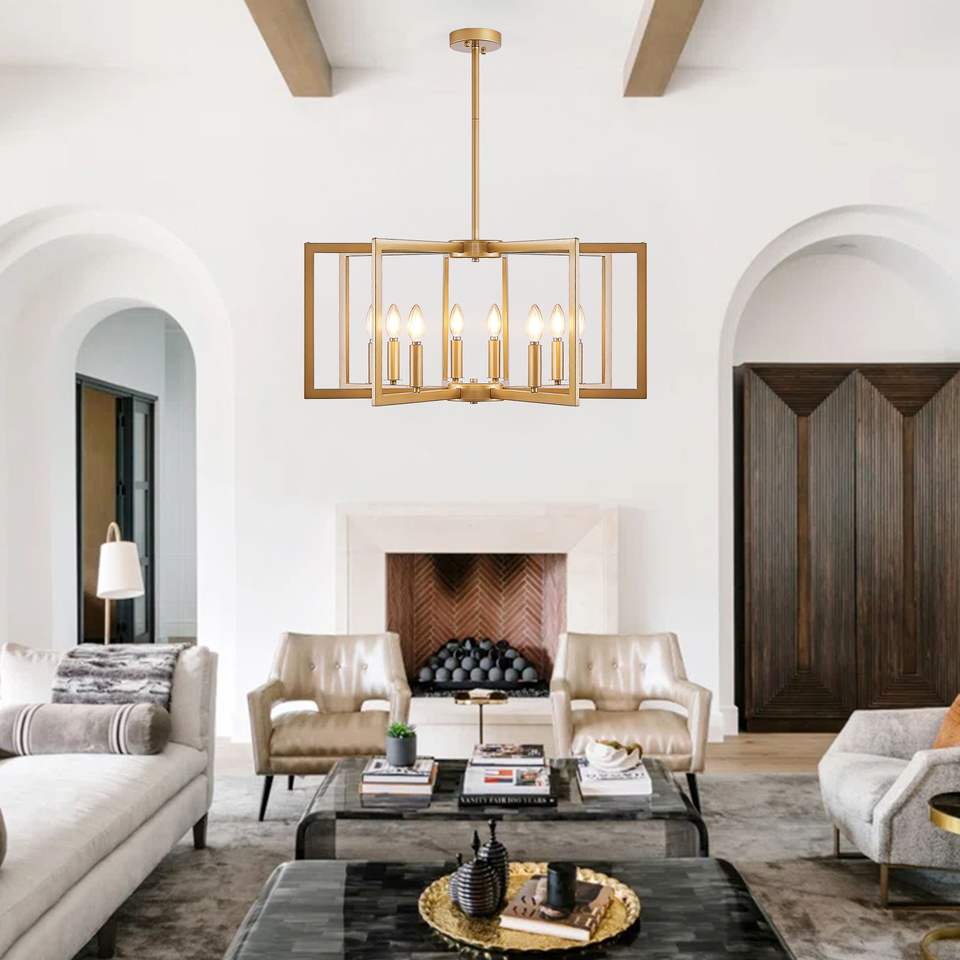 27\" Modern Golden Geometric 8-Light Chandelier Industrial Metal Pendant Light Fixture for Living Kitchen-Bulb Not Included