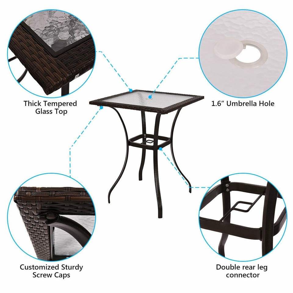 28.5 Inch Outdoor Patio Square Glass Top Table with Rattan Edging Stylish Patio Furniture