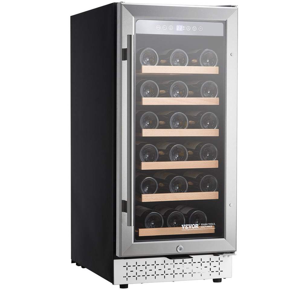 28 Bottle Freestanding Mini Wine Cooler Refrigerator Digital Temperature Control Adjustable Glass Door Built-in for Home Office