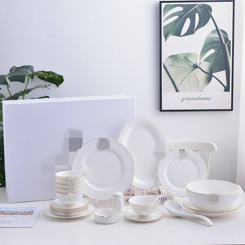 28-Piece Luxury Bone China Fine Ceramic Tableware Set Gold Rim Dinnerware Stocked for Home or Wedding Custom Logo