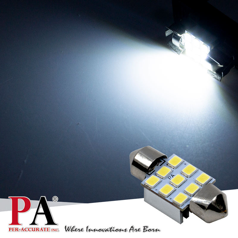 2835 LED 9SMD 28mm Warm White 6000K Festoon Interior Automotive Bulb