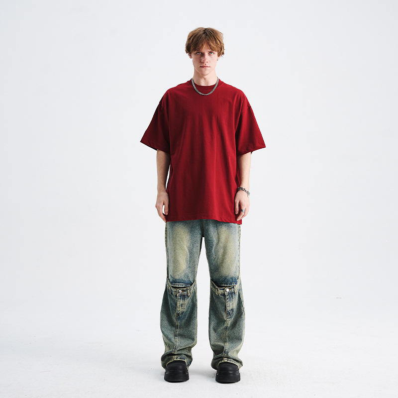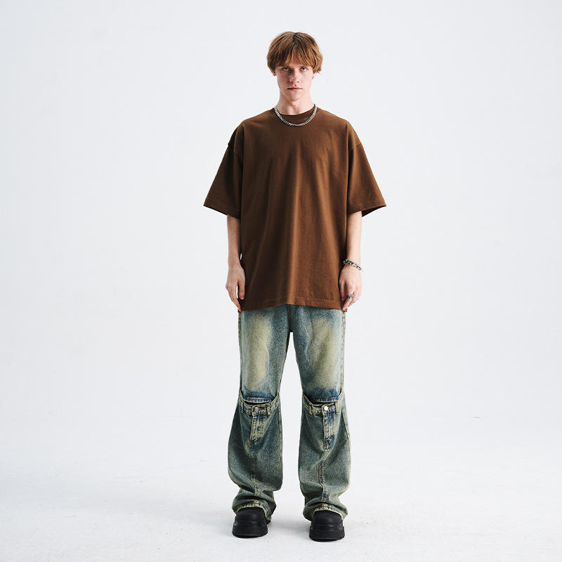 285g Heavy Cotton Solid Color Normal Nose Short Sleeve Loose Basic Base T-shirt for Men Casual Customizable Patterns