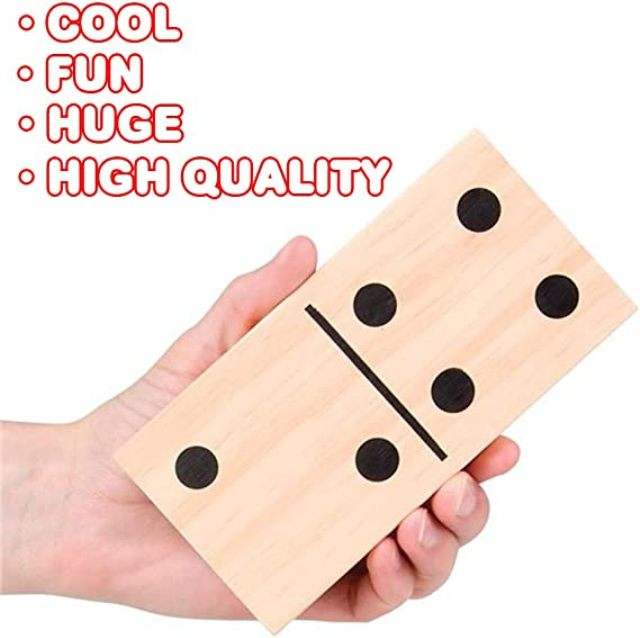 28PC Extra-Large Wooden Dominoes Set with Carrying Bag for Kids and Adults for Game Night or Chess Games