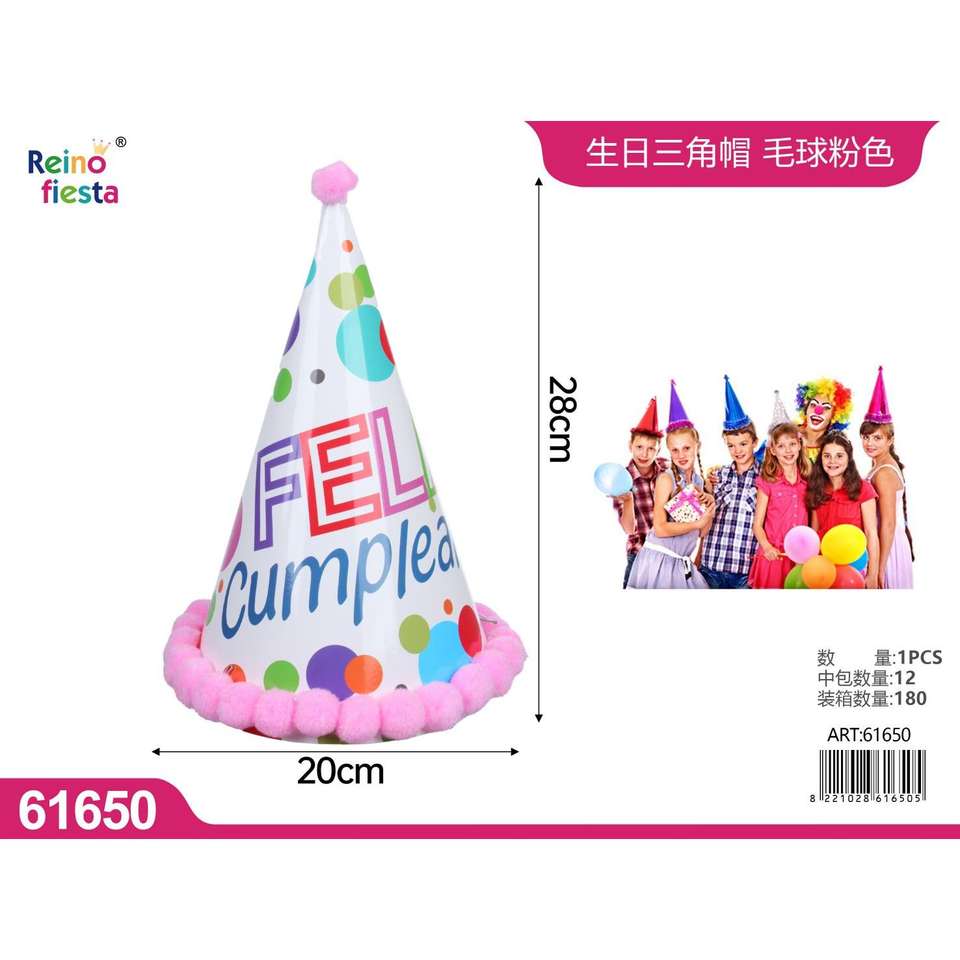 28cm Pink Polyester Birthday Party Hat with Pom Pom for Celebrations Sports Business and Christmas Stylish Character Style