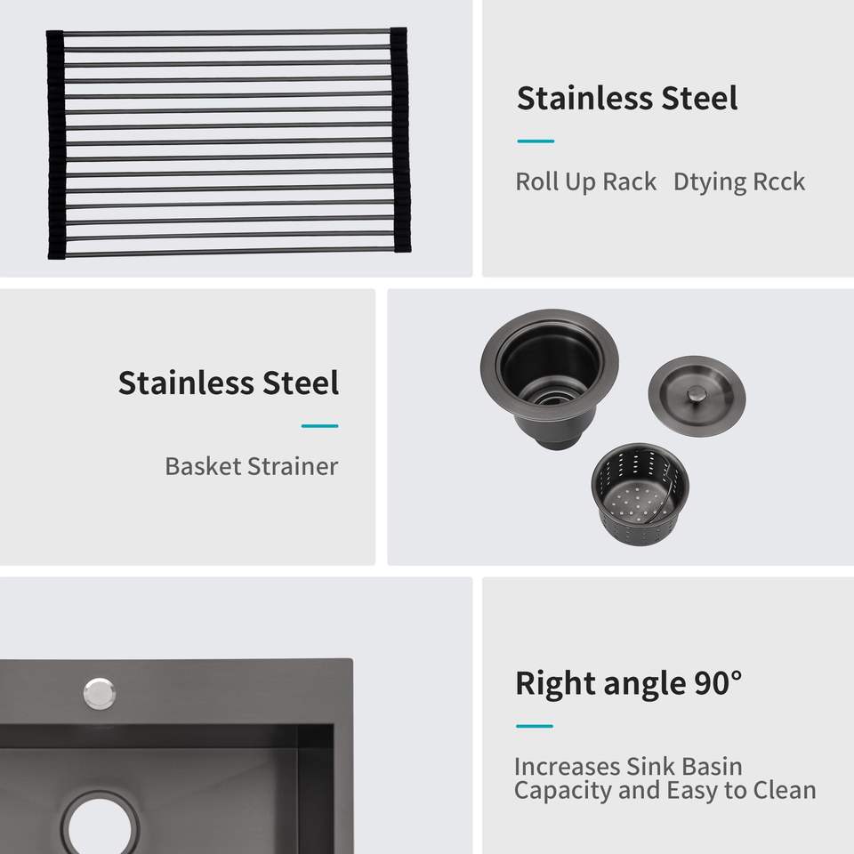 28x22 Gunmetal Black Drop-In Topmount 18 Gauge Stainless Steel Kitchen Sink 28 Kitchen Sink Topmount