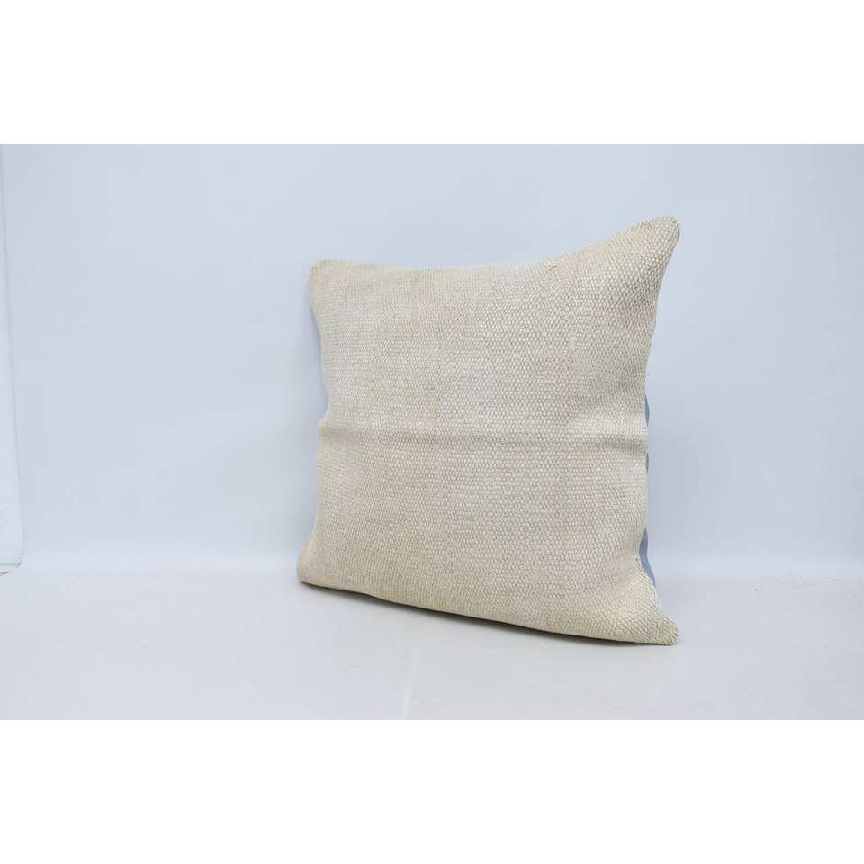 28x28 Inch Beige Ikat Patchwork Wool Pillow Soft Vintage Embroidered Fabric Decorative Cushion for Sofa or Home Use