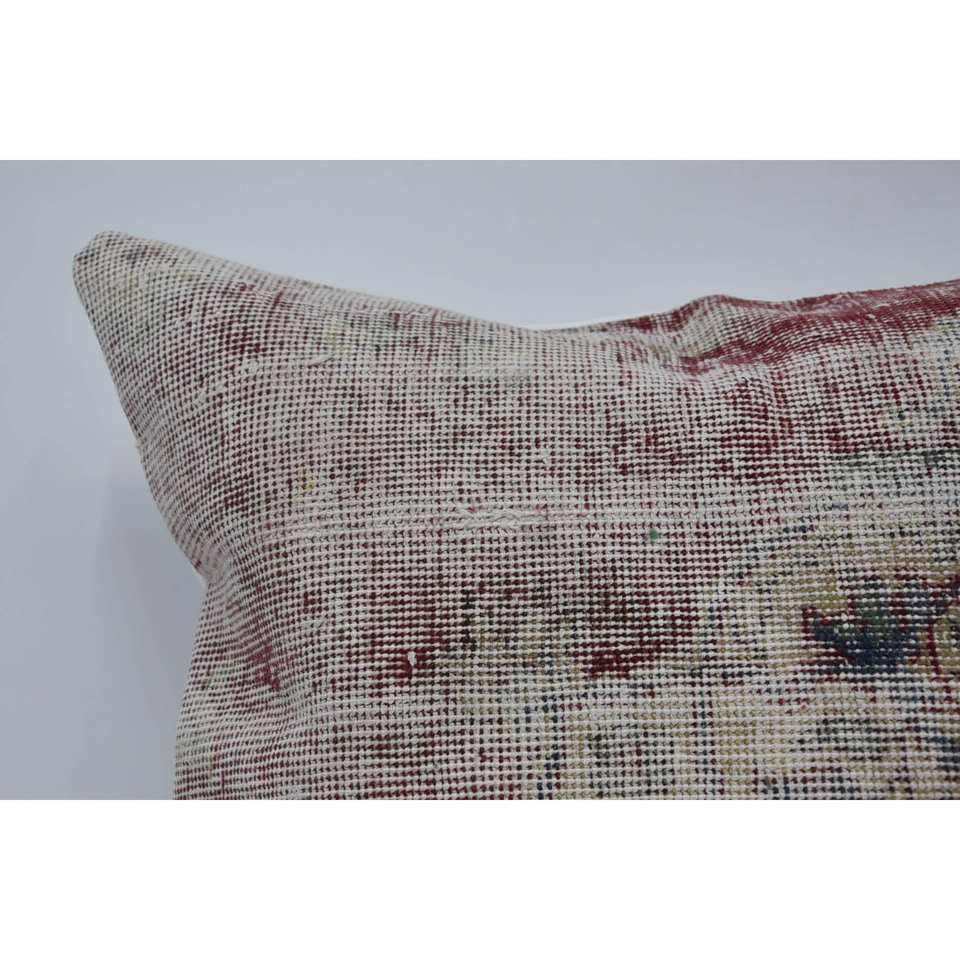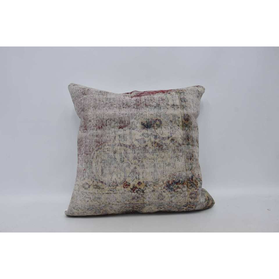 28x28 Inch Beige Toile Patchwork Wool Pillow Kantha Style Cushion with Woven Technique and Vintage Pattern