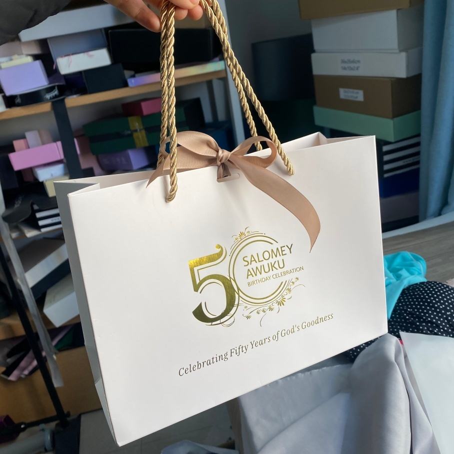 28x9.5x20cm Custom Luxury Coated Paper Bag Screen Printing White Ribbon Handles for Watch Jewelry Boutique Retail Gift Packaging