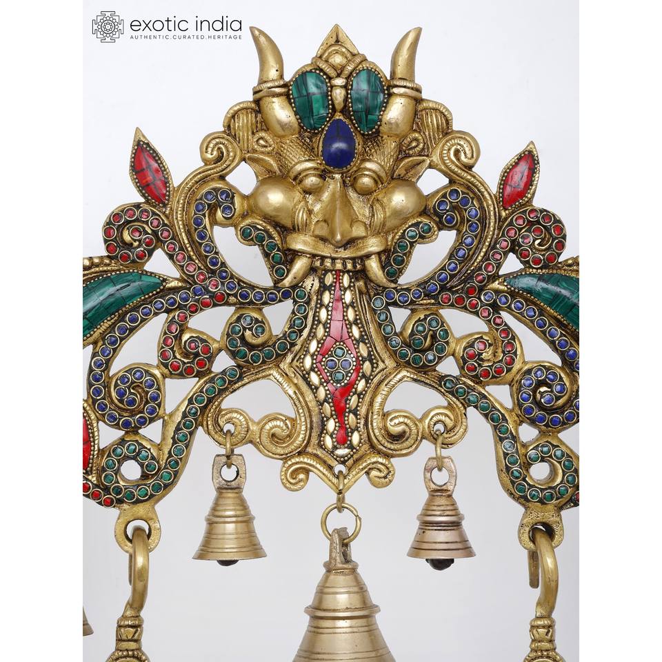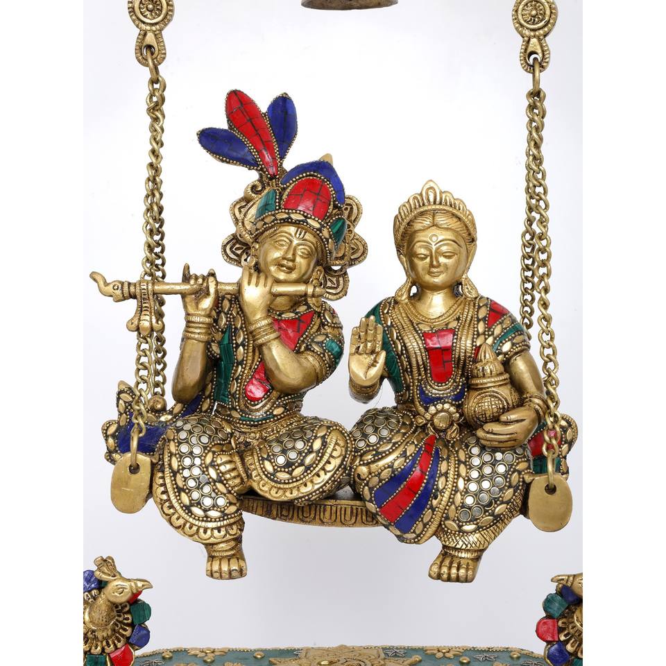 29 Inches Brass Statue of Radha-Krishna on Kirtimukha Swing with Inlay Work and Bells Sculpture For Gifting and Temple