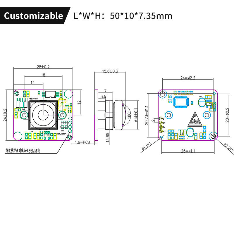 2MP PS5268 Sensor 1080P Wide Dynamic Face Recognition Camera USB Module for Access Control System