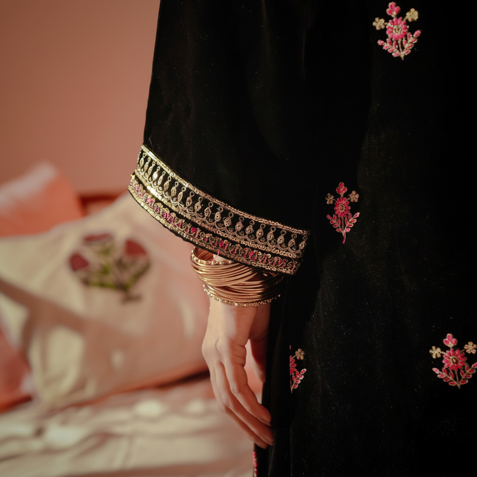 2PC Embroidered Velvet Suit Jacket PW4250