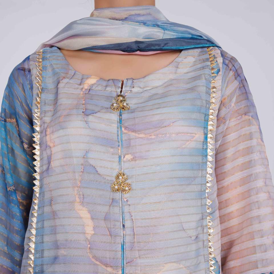 2PC Organza Zari Shirt with Tasset Silk Dupatta PS4030 Club Dresses