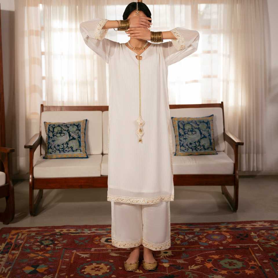 2PC Women's Chiffon Zari Suit PS5082 Elegant Set Design