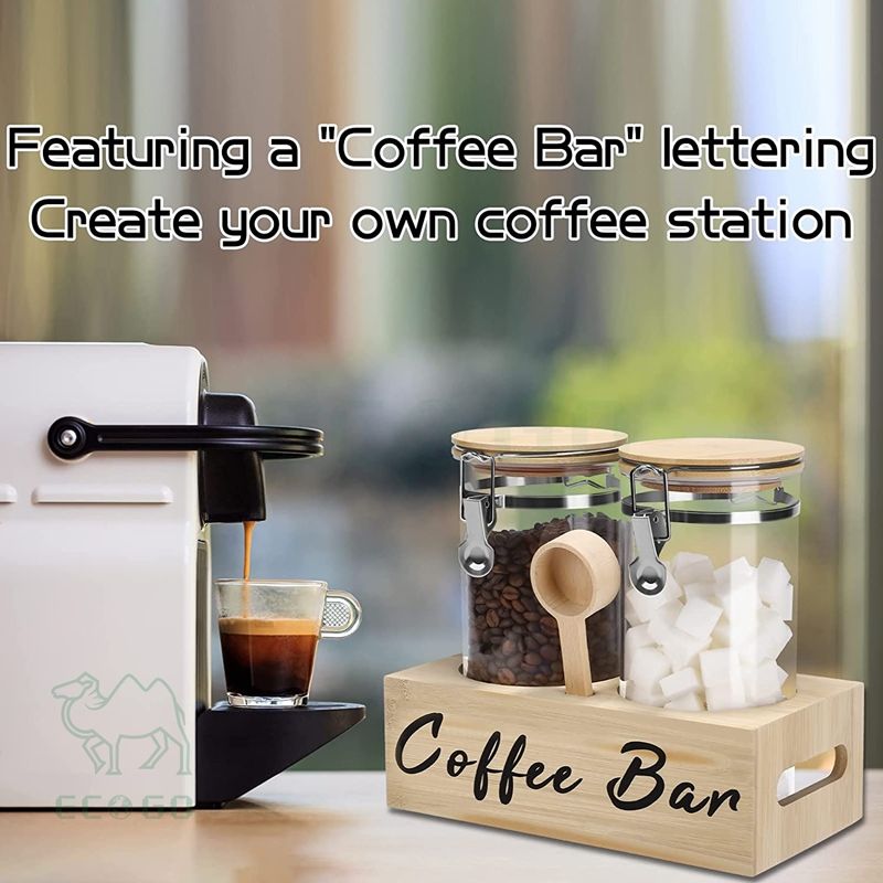 2PCS Glass Coffee Containers with Shelf Glass Coffee Bean Storage Container Coffee Canister Set Jars for Kitchen Food Storage