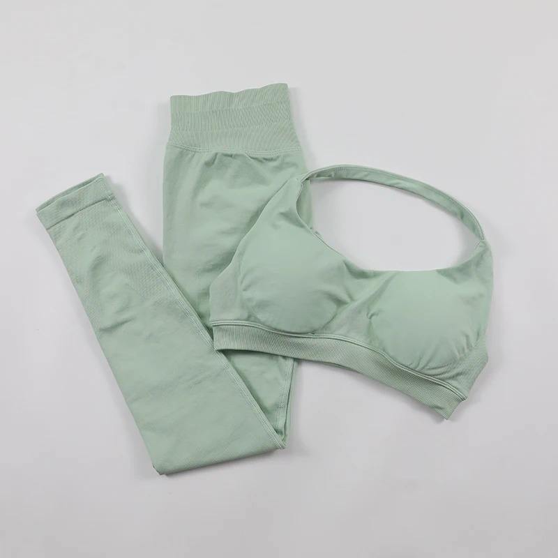 2PCS Seamless Women Yoga Set Workout Sportswear Gym Clothing Fitness Long Sleeve Crop Top High Waist Leggings Sports Suits
