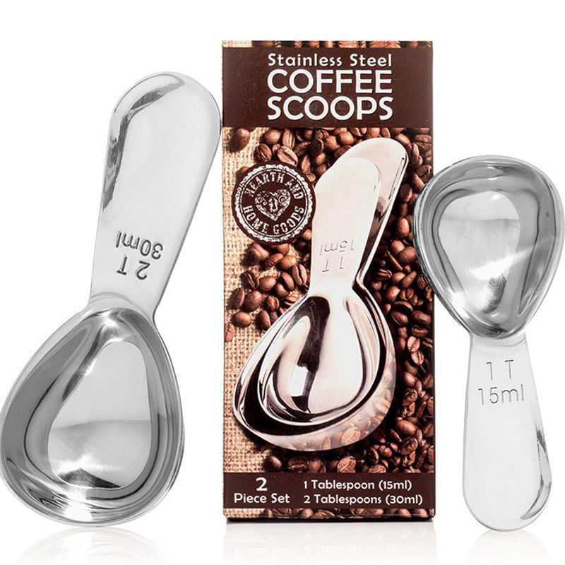2PCS Set Kitchen Gadgets 1Pcs Silver Multi Purpose 30ml/15ml Tablespoon 304 Stainless Steel Coffee Measuring Spoon