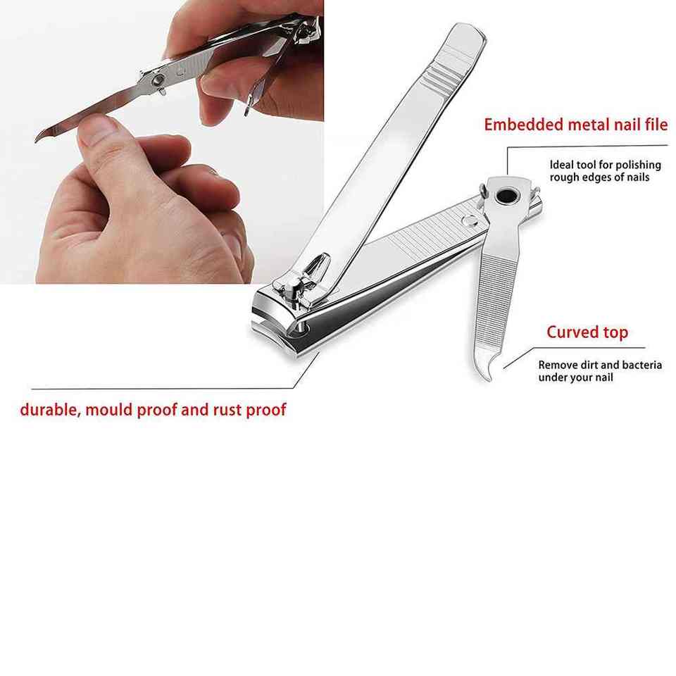 2PCS Set Steel Nail Clipper Polish Finish Fingernail Cutter Trimmer Manicure Pedicure Toe Nail Clipper With Built-in Nail File