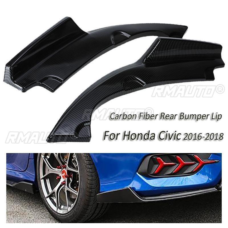 2Pcs Car Rear Bumper Lip Diffuser Splitters Winglet Aprons Spoiler Carbon Fiber for Honda Civic 2016-2018 Car Body Styling Kit