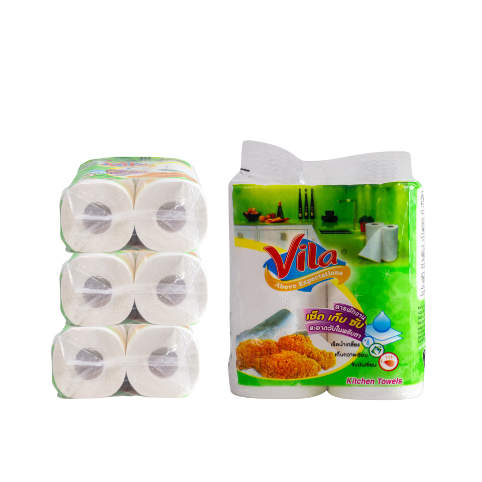 2Ply High Absorbent Kitchen Paper Roll 25m Length Water & Oil Cleaning Single Fold Virgin Wood Pulp 2/6/8/12/24 Pack Per Bag