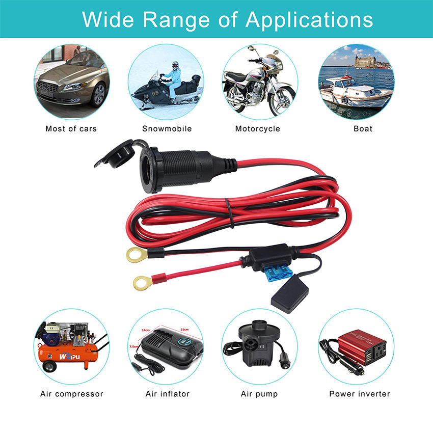 2V Car Power Socket to Ring Terminal Adapter Cable with Inline Fuse for Automotive Battery and Solar Panel Connections