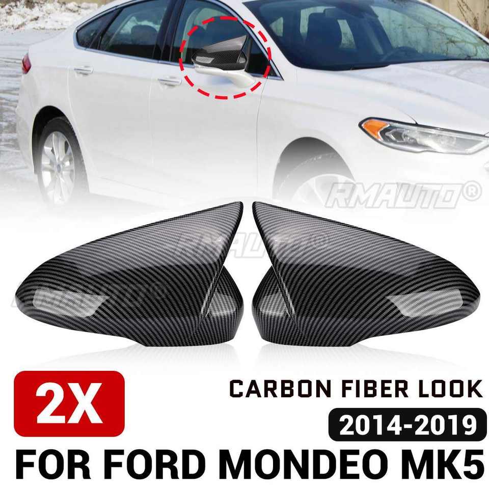 2X Rear View Side Case Trim ABS Carbon Fiber Style Car Rearview Mirror Cover for for Ford for Mondeo MK5 2014-2019