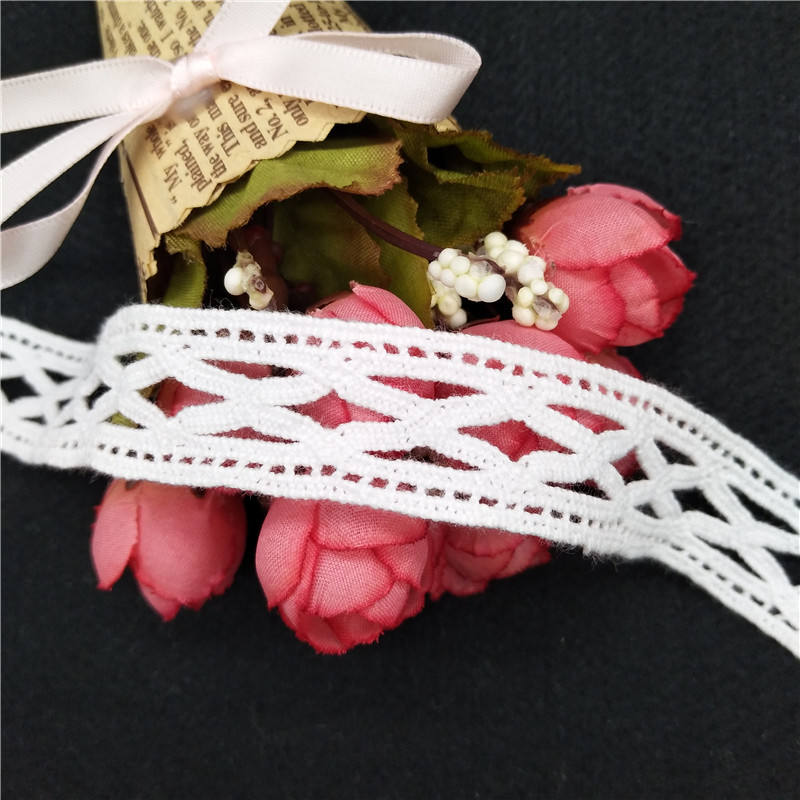 2cm Ivory Embroidered Lace Trim with Cross Elegant Lace Trim for Sewing & Crafting