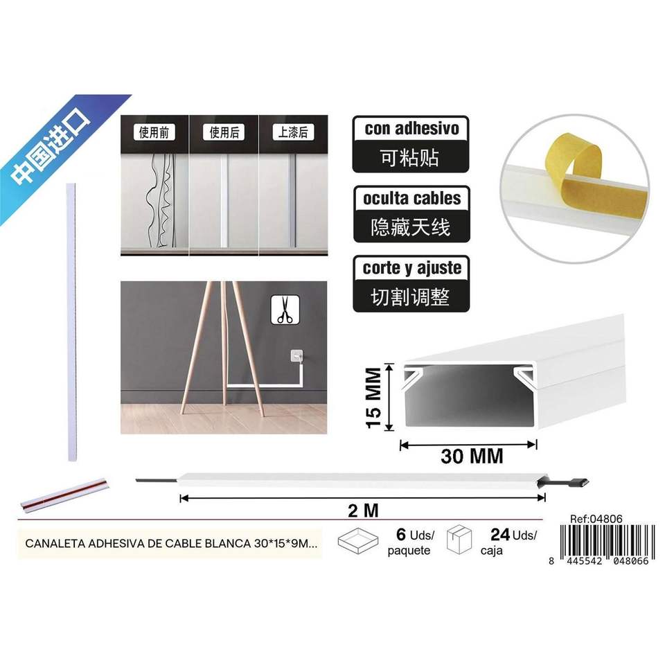 2m White PVC Adhesive Cable Duct Solid 30x15x9mm Wiring Ducts for Cable Management