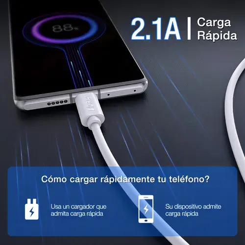 2m White Plastic USB Cable CAB185 with Micro-USB Input and Output 60W Fast Charging for Android Mobile Phones and Computer