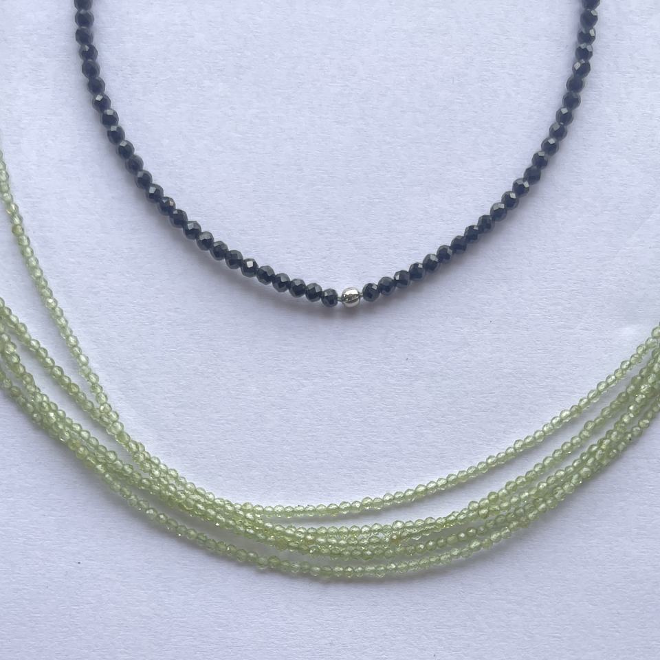Product Name:Natural Black Spinel & Peridot Faceted Multi Strands Beads Necklace