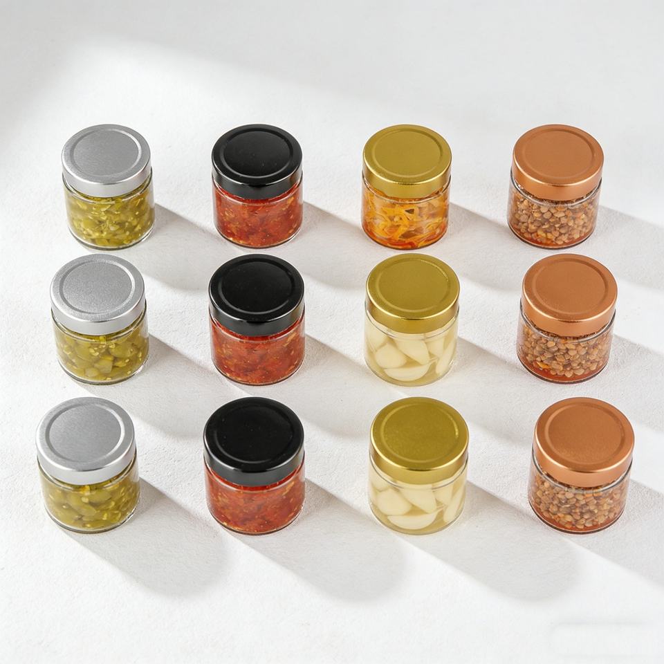 2oz 4oz 8oz 16oz 50ml 100ml Round Wide Mouth clear Glass Kitchen Storage Pickle Honey Jar with Aluminium Lid for Spices Food