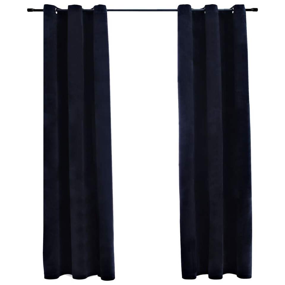 2pcs 37"x63" Black Velvet Blackout Curtains with Rings Blackout Valances