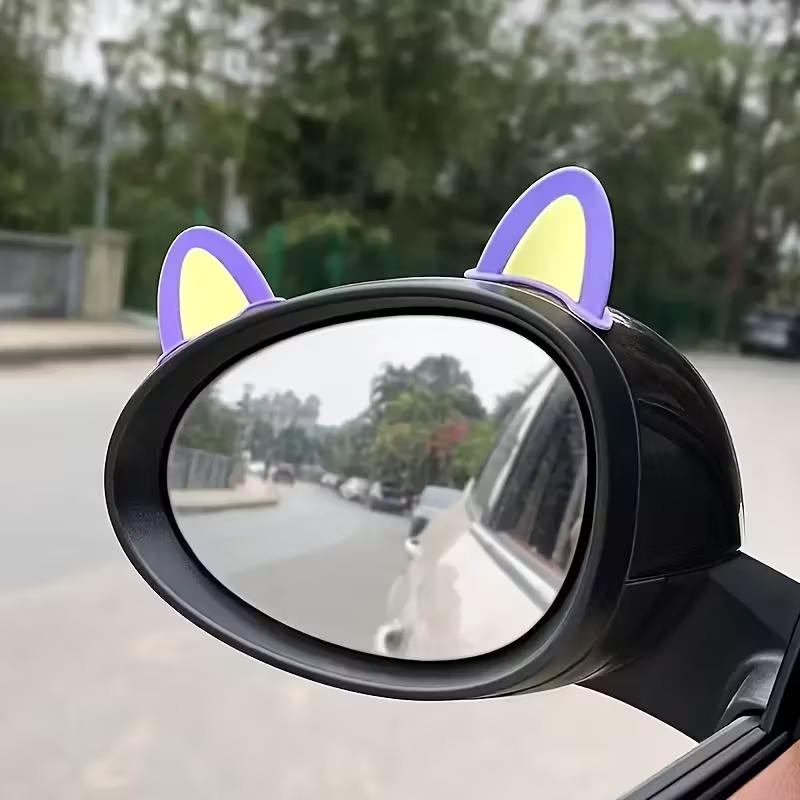 2pcs Adorable Cat Ear-Shaped Steamed Buns Car Steering Wheel Decoration - Adhesive Dashboard Trim, Plastic Interior Car