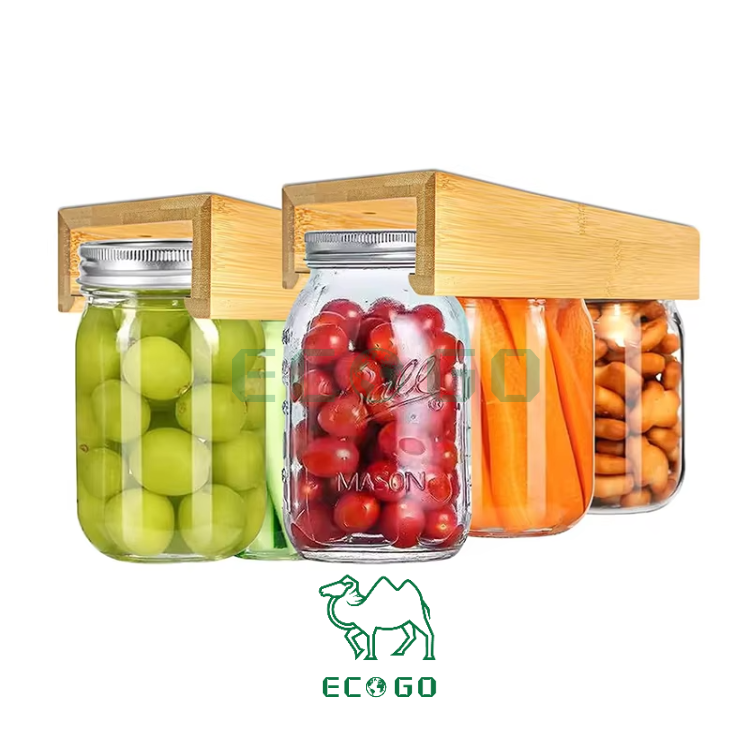 2pcs Bamboo Hanging Jar Organizer Canning Jar Holder Under Kitchen Cabinet Jars Storage Rack Kitchen Sorter Space Saving