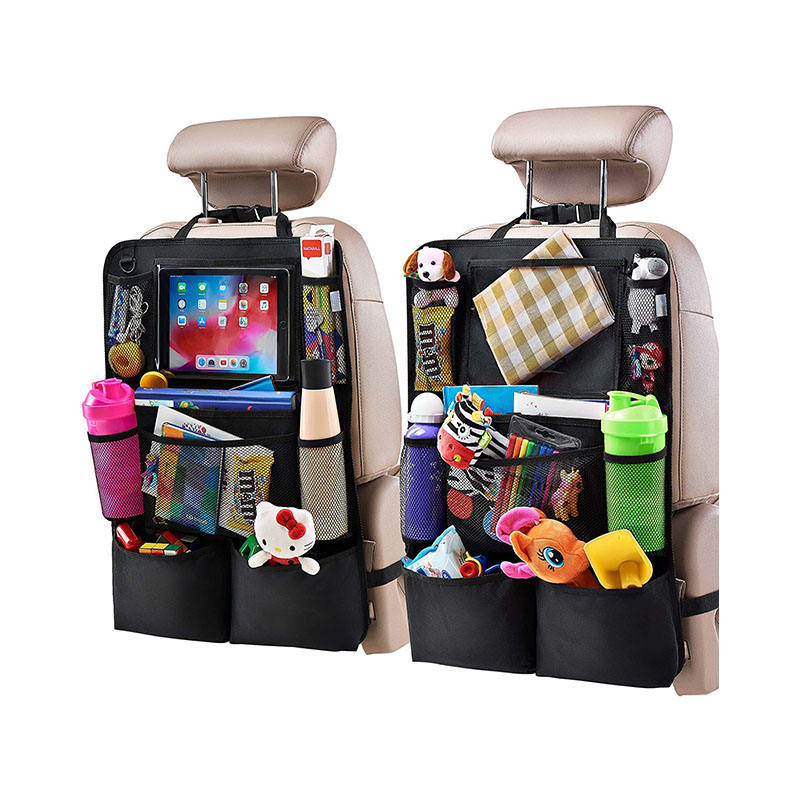 2pcs Fabric Car Backseat Organizer Touch Screen Tablet Holder 9 Pockets Waterproof Foldable Set Also Serving Kick Mats Protector