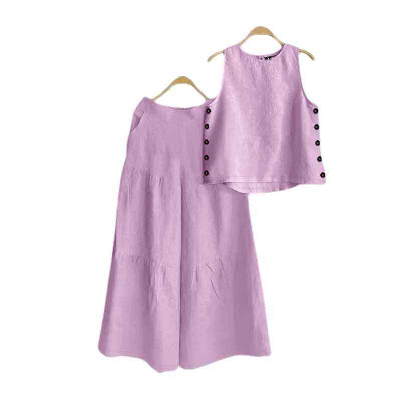 2pcs Fashionable Sleeveless Tank Tops Wide Leg Pant Suits for Women Elegant Office Lady Style Summer Work Trackusuits Plain Dyed