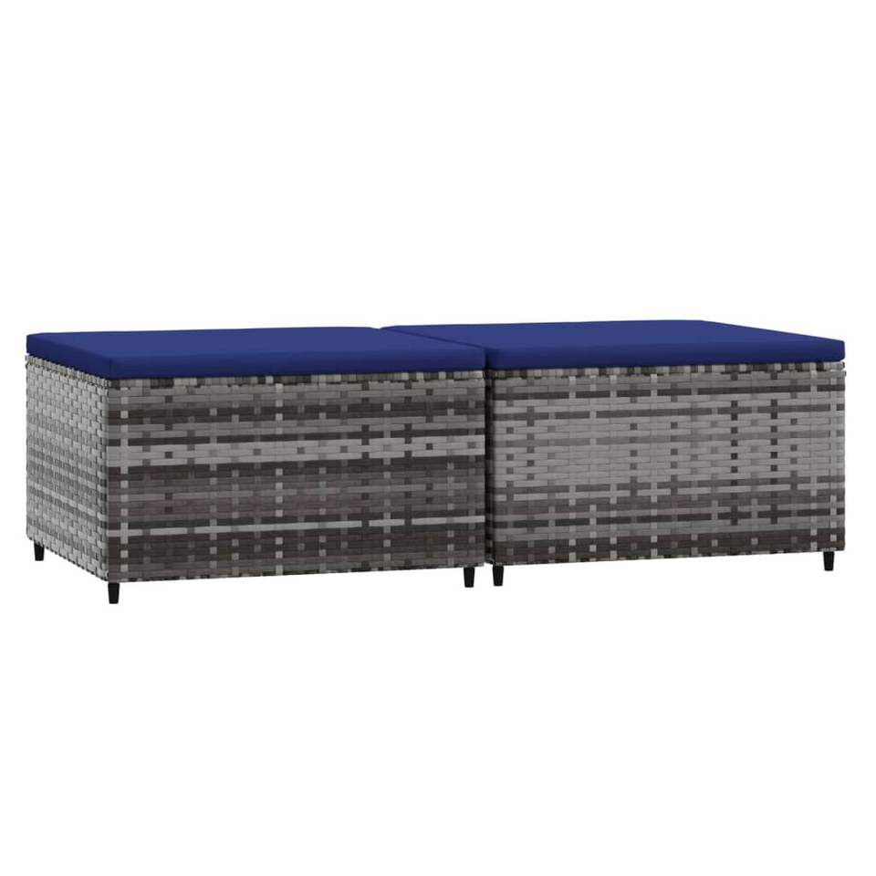 2pcs Gray Poly Rattan Patio Footrest with Cushions Garden Sets
