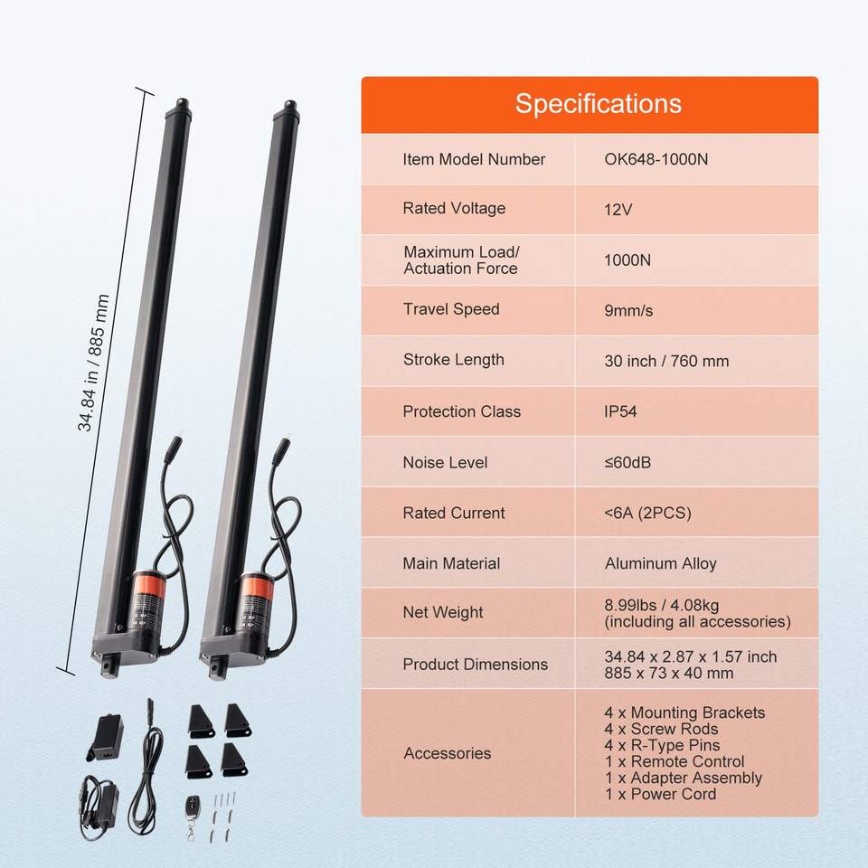 2pcs High-Speed 30 Inch Linear Actuator Kit 12V 220lbs/1000N Linear Motion Actuator for TV/Table/Sofa 0.35"/s Cylinders