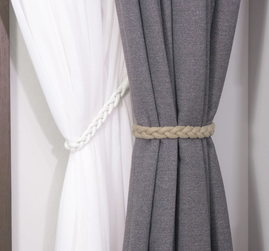 2pcs Magnetic Soft Curtain Tiebacks, Cotton Hand-Woven Tieback, Convenient Decorative Weave Rope Curtain