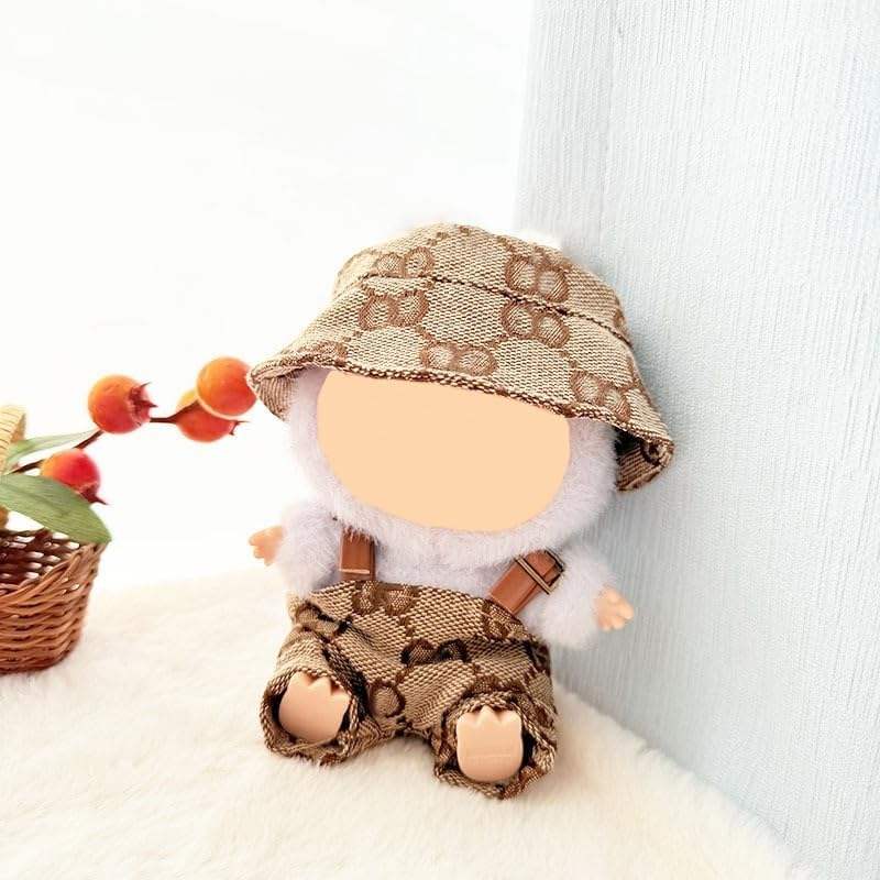 2pcs Set of Adorable 6.7 Inch (17cm) Lightweight Doll Clothes Cute Hat & Overalls for Collector's Dress-Up 3+ Years